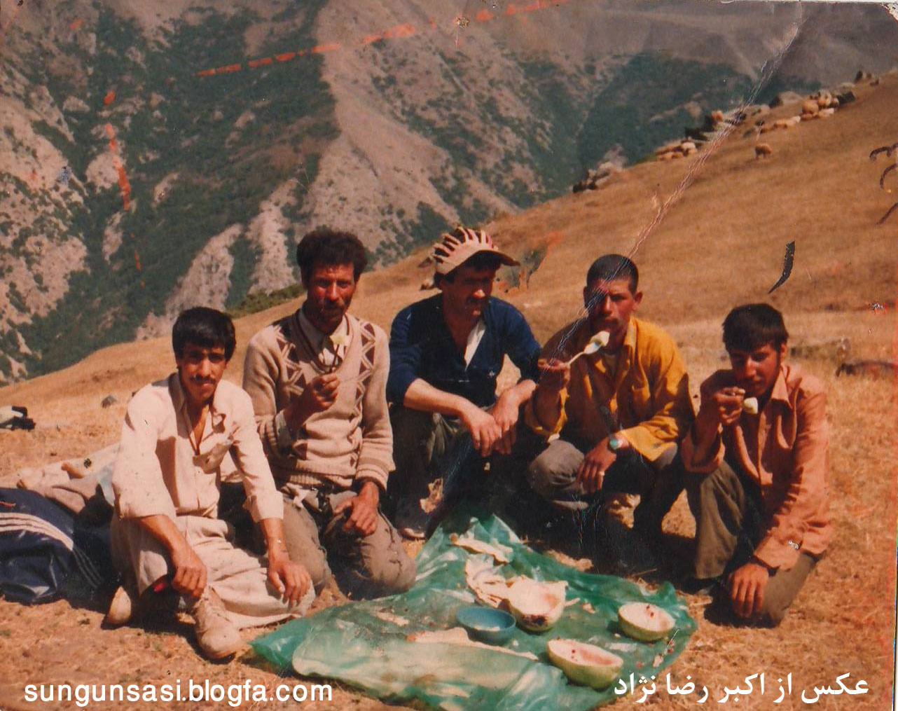 وارد گورستان شده و براي اموات خود فاتحه خوانديم و چون از شهر فاصله زياد داشتيم، موقع ظهر هم بود، آتش كوچكي در همان محل روشن كرديم تا غذاي خود را گرم كرده و صرف كنيم و چاي بنوشيم متاسفانه هنوز چائي مان آماده نشده بود كه نگهبانان شركت مس به محل آمدند و مارا مورد عتاب قرار دادند و غذا و چائي مان را بر زمين ريختند و ما را از گورستان نيز با توسل به زور و قوه قهريه خود بيرون كردند كه اين خاطره را با دو بيت شعر به زبان مادري خود آذري براي تجديد خاطره نوشته ام.